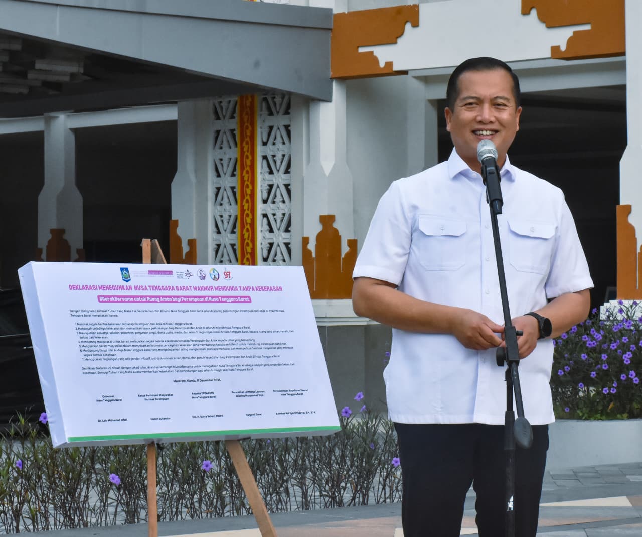 Sebagai wujud komitmen total pemerintah daerah, dilakukan penandatanganan Deklarasi NTB Makmur Mendunia Tanpa Kekerasan, yang ditandatangani oleh Gubernur NTB, Wakil Gubernur NTB, Ketua Partisipasi Masyarakat Komnas Perempuan, Perwakilan lembaga jejaring masyarakat sipil dan Ketua Tim Penggerak PKK NTB sebagai penegasan cita-cita NTB Makmur Mendunia yang tidak hanya pembangunan fisik atau pertumbuhan ekonomi, tetapi juga rasa aman, penghormatan dan pemberdayaan perempuan serta anak.