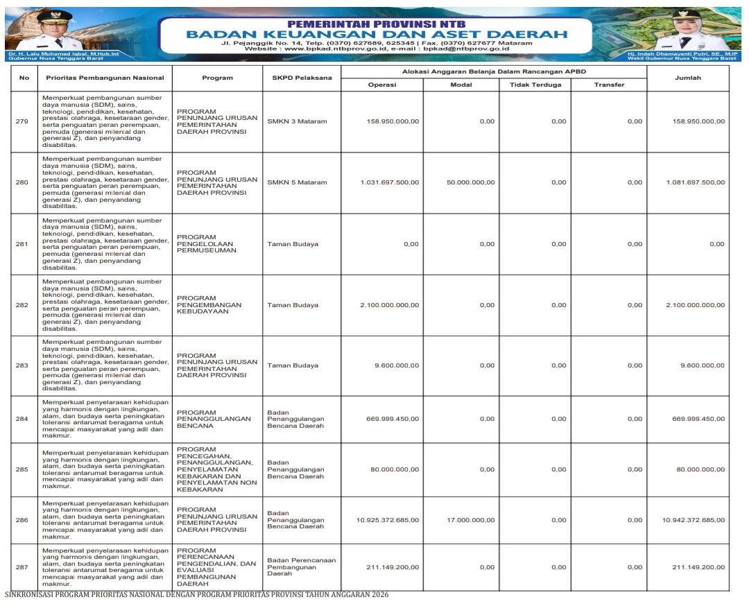 SINKRONISASI PROGRAM PRIORITAS NASIONAL DENGAN PROGRAM PRIORITAS PROVINSI TAHUN ANGGARAN 2026